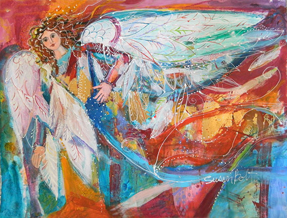 Patsy Angel Note Card. This package of 6 note cards measures 4.25 inches by 5.5 inches and includes envelopes. All cards feature the same image.